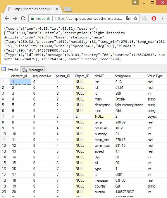 SQL Server ile Web Servise bağlanıp Json formatında hava durumunu çekme