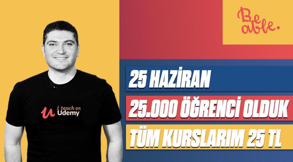 Bugün ayın 25’i ve biz bugün Udemy’de 25.000 kişilik bir aile olduk. Bunu kutlamak için tüm kurslarım 25 TL.