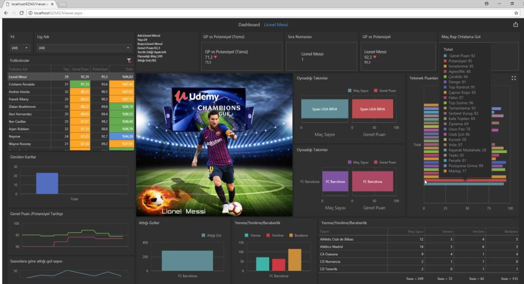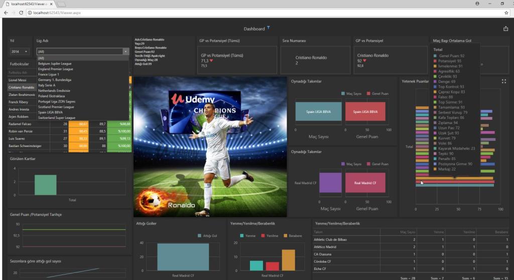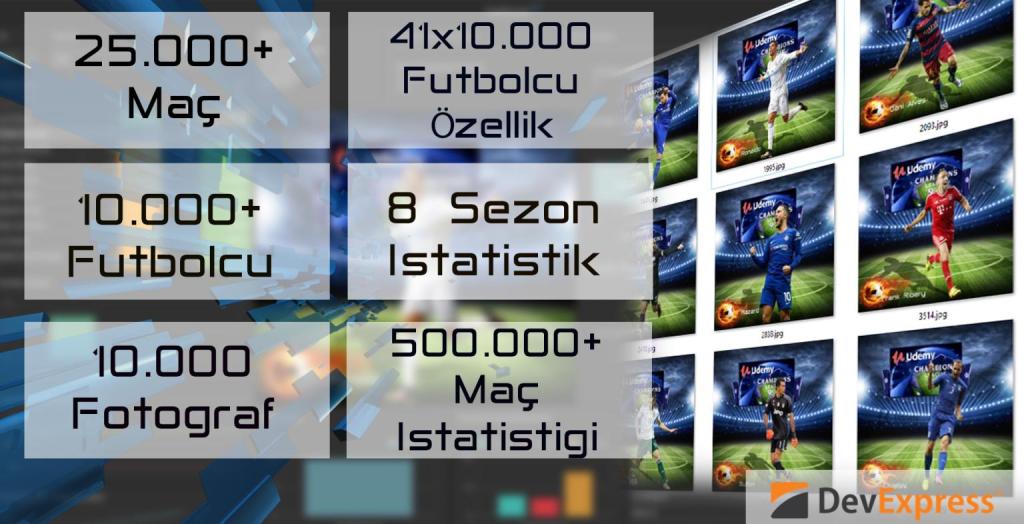 Avrupa futbol liglerinin 8 yıllık istatistiklerinden dashboard’lar yapmışım. 10.000 futbolcunun resimlerini google’dan arayıp bulan uygulama yazmışım.