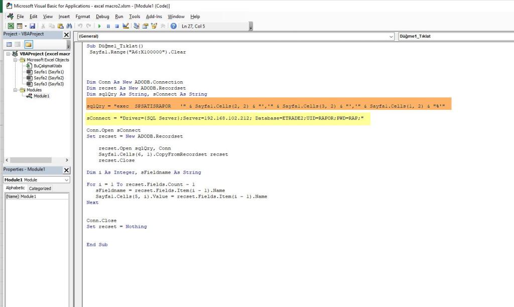 SQL Sorgusunu Macro ile Excel’den çalıştırmak.